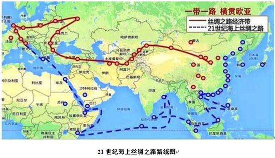 “21世纪海上丝绸之路”以及“丝绸之路经济带”以打造人类命运共同体为目标,体现共商、共建、共享的发展理念,代表了一种全新的国际合作模式。