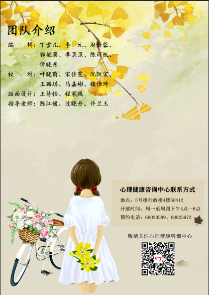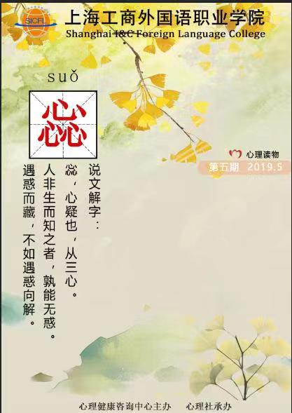 2019年心理读物《惢》第五期发布、维护心理健康咨询中心微信公众号,利用多个平台开展心理健康宣传和教育工作。