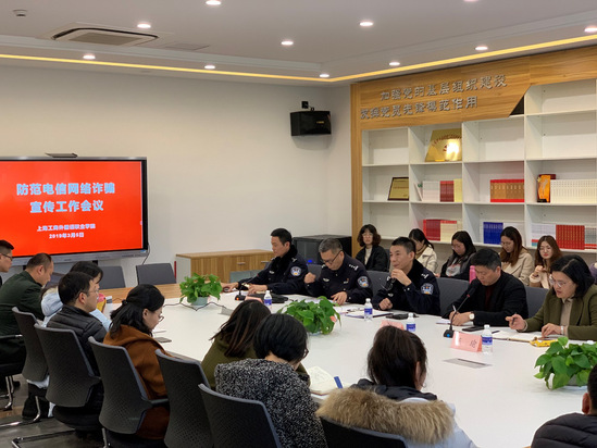 2019年3月5日上午,我校在大学生活动中心会议室召开了防范电信网络诈骗宣传工作专题会议。后保处处长张永生、学生处处长陈瑜,各院系辅导员及后保处相关工作人员参加了会议。会议特邀临港派出所所长潘友明、副所长徐斌、惠南派出所副所长唐凯松,以及高校派出所的丁丁警官和我校驻校民警吴警官参加。会议由陈瑜处长主持。
