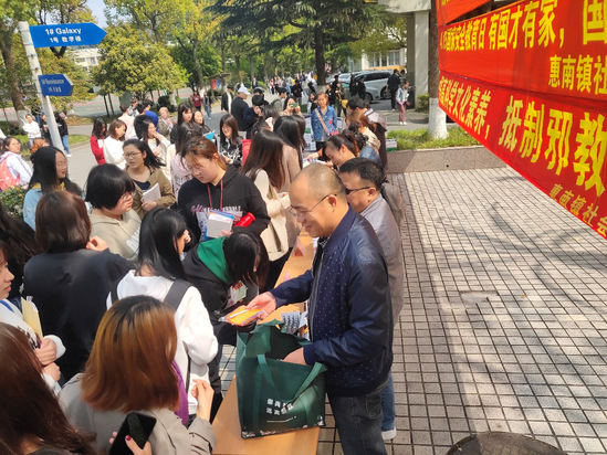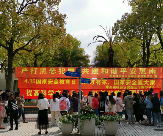 4月17日中午,在第四个全民国家安全教育日到来之际,我校和惠南镇社会治安综合治理委员会联合主办的宣传活动在中校区小广场举行。