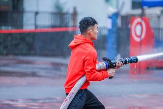 比赛分为技能操作比赛和理论竞答比赛两个环节。上午,参赛的八支队伍按照抽签顺序进行了技能操作比赛,其中包含宿舍逃生和接力灭火两项任务。我校参赛队员出色的完成了各项技能比赛项目,上午场获得了第一名的好成绩。