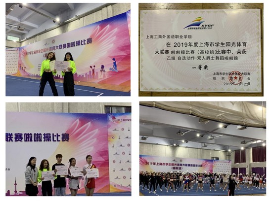 12月22日,由上海市教育委员会、上海市体育局、共青团上海市委员会共同主办的2019年上海市学生阳光体育大联赛啦啦操比赛(高校组)于华东师范大学体育与健康学院体育馆圆满落幕!我校学生张梦如、张蓝天经过艰苦训练,在双人爵士舞蹈啦啦操比赛中荣获“一等奖”,为校争光。