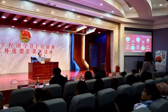 为激励我校团学干部奋发向上,利用奋斗榜样的力量去引领广大团员青年,上海工商外国语职业学院“青马工程团学骨干培训班暨工外优盟汇课题活动”于2018年12月12日16:15在我校四号楼四百人报告厅开展。全国优秀共青团干部、上海市青年五四奖章获得者、上海信息技术学校团委书记兼学生发展中心主管任健老师受邀担任第一期“青马工程”团学骨干培训班暨工外优盟汇课题活动主讲嘉宾,我校学工部部长陈瑜老师、校团委书记杨燕玲老师、校团委委员王铮老师和各院系分团委书记出席本次活动。