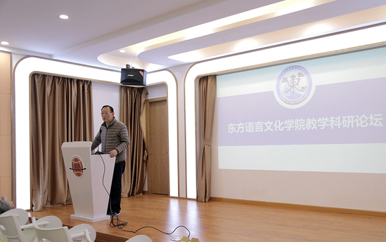 12月20日下午,东方语言文化学院教学科研论坛第二期在大学生活动中心辅导员工作坊举办,东方语言文化学院院长金钟太教授,英语语言文化学院顾问陆效用教授,东方语言文化学院、欧洲语言文化学院及英语语言文化学院专业教师出席了本次论坛。