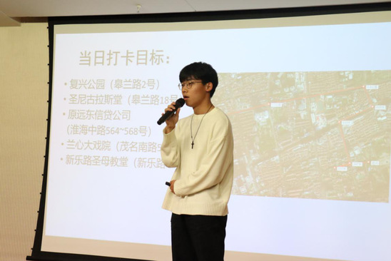 本次活动由19级俄语系学生分三组完成,探访目的地分别为:以俄罗斯领事馆、中国外汇交易中心为主的“外滩线”,以圣尼古拉斯堂、新乐路圣母大堂为主的“教堂线”,以普希金纪念碑、上海展览中心为主的“文学线”。同学们借助精美的PPT、丰富的照片、有趣的视频展示了沪上俄式建筑的独特风采。