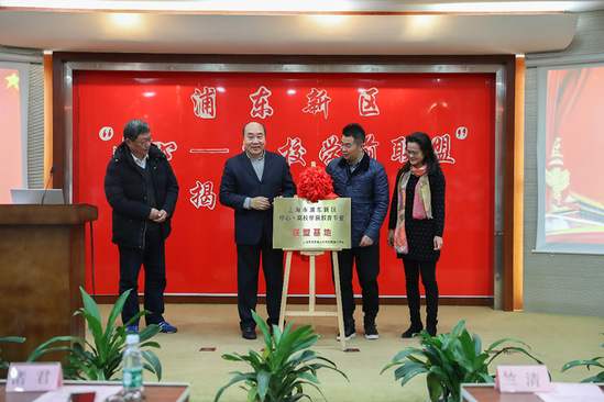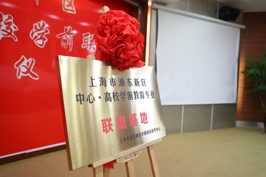 校常务副校长毛忠明、党委书记李月松和诸君主任,竺清副主任共同为浦东新区“中心——高校学前联盟”揭牌。与会专家领导一起合影留念。