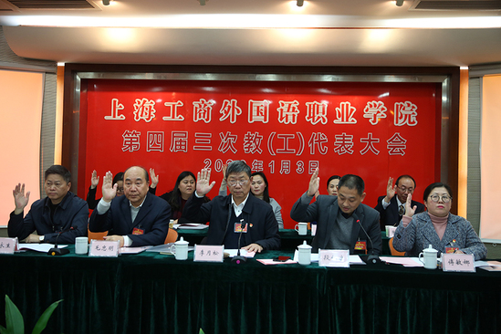 各位参会教职(工)代表举手表决通过了大会决议。