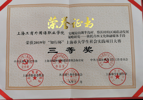 近日传来喜讯,我校新媒体与文法学院社会实践课题研究小组参加2019年“知行杯”上海市大学生社会实践项目大赛,荣获比赛三等奖。