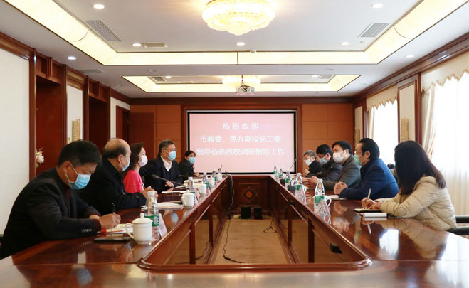 3月3日上午,市教卫工作党委副书记、市教委副主任李昕,市民办高校党工委副书记王庆,市教委民办教育管理处处长赵扬,市教委后保处处长张旭、副处长陈宇红一行五人来校,实地调研检查学校疫情防控工作情况。李昕副书记主持召开座谈会。