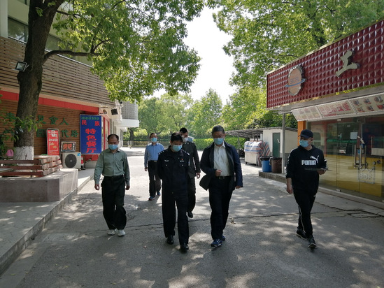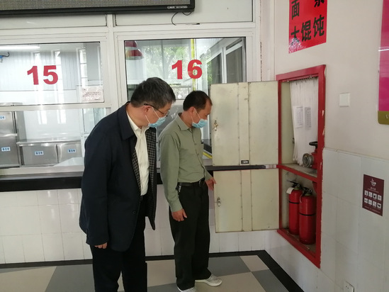 在北门岗,校领导详细询问了门岗值守情况、出入校园流程等,叮嘱安保人员把好“第一道关”,坚决杜绝隐患入校园。检查留校学生宿舍区时,仔细询问了宿舍管理人员留校学生的思想、生活等情况,要求严格落实学校疫情防控政策,加强留校学生管理。李书记一行还对食堂就餐环境和消防设备进行了仔细检查。