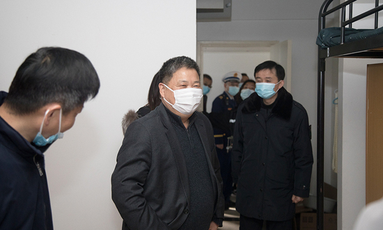 徐明宝一行首先来到学校北校区学生宿舍,查看寒假期间留校学生情况,详细了解留校学生的疫情防控管理、假期就餐安排等工作细节,对学校为留校学生寒假生活所做的周到安排表示满意。