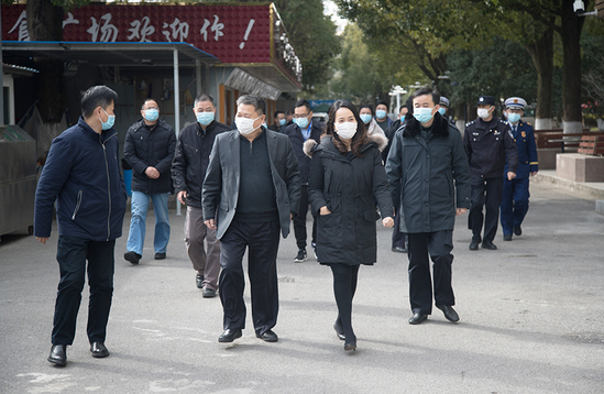 2月8日下午,浦东新区惠南镇镇长徐明宝、副镇长代敏、王新悦,东城社区、园中社区、惠南镇稳定办、区域发展办、社建办、安监所、惠南派出所、市场监督管理所、消防救援大队等领导一行20余人来校检查指导疫情防控、安全稳定及留校学生服务管理工作。学校校长孔凡邨,党委副书记、副校长段仁启,党委委员、工会主席、后保处处长张永生,校办主任傅建辉以及学生处处长陈瑜等陪同检查。